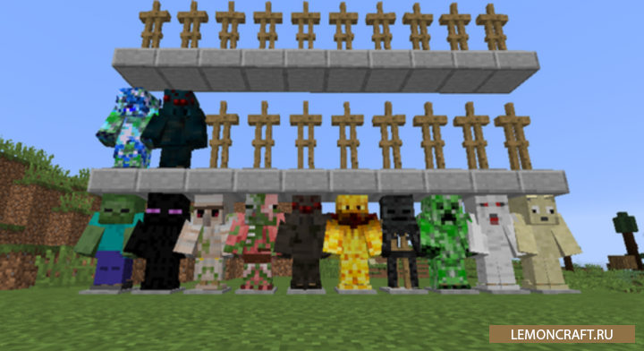Мод на новую броню Mob Armor добавляет в игру 16 видов новой брони, которая своим внешним видом будет напоминать мобоав. Если вы наденете такую броню, вы получите различные характеристики и способности мобов, а так же интересный внешний вид. С такой броней вы можете затесаться в ряды врагов и оставаться там незамеченным.